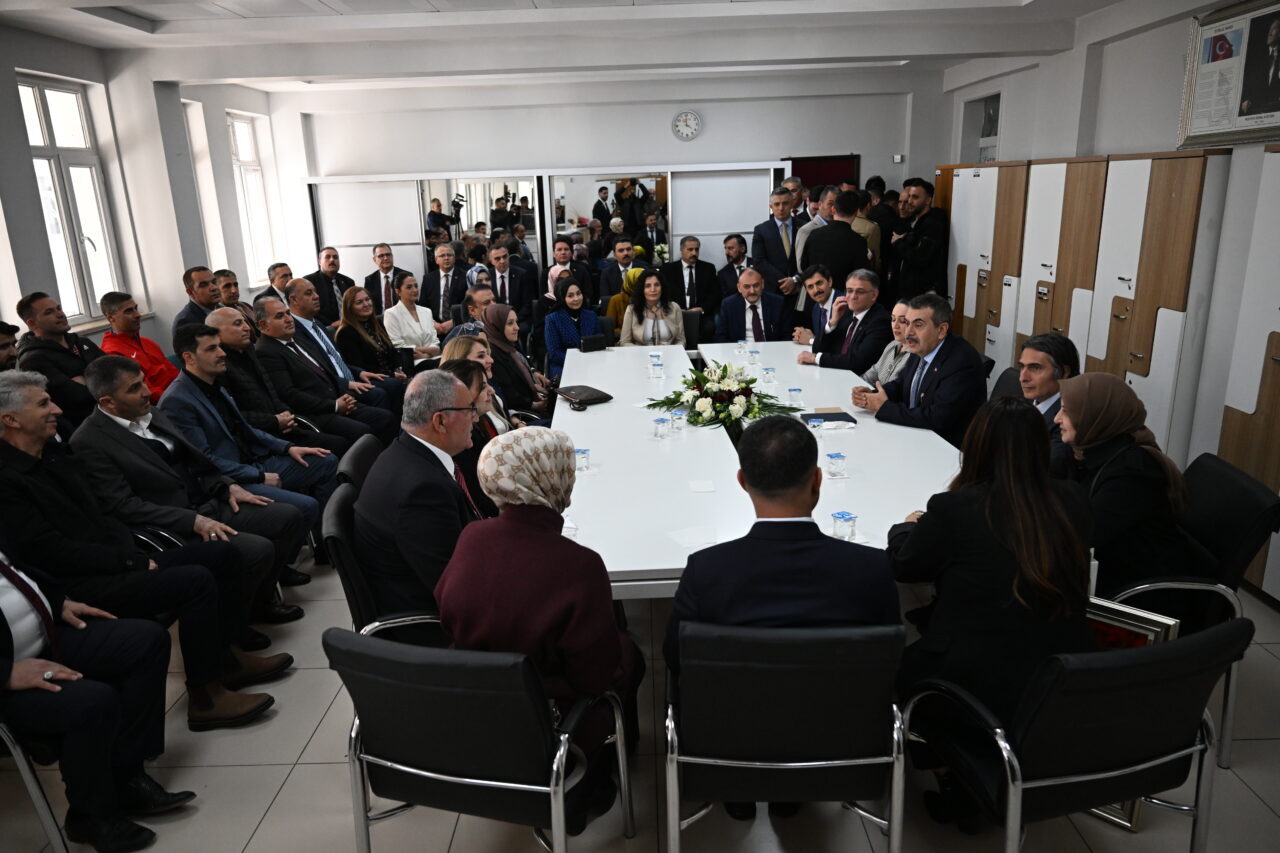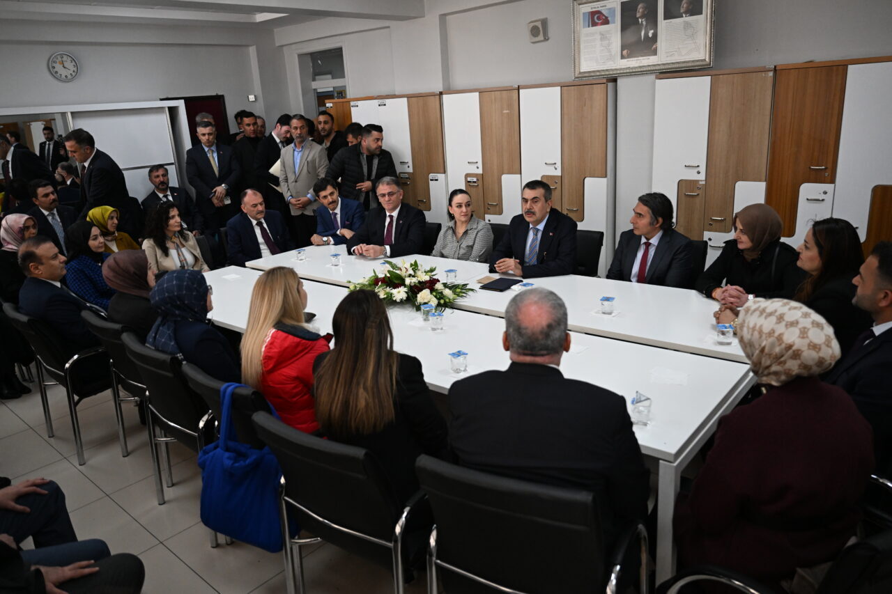 Bakan Tekin ve beraberindekiler, daha sonra Atatürk Anadolu Lisesi'nde "Öğretmenler Odası Buluşmaları" programında öğretmenlerle bir araya geldi.