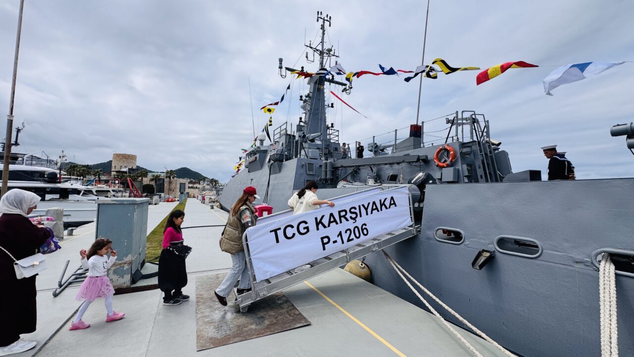 Bodrum'da Tuzla sınıfı karakol gemisi TCG Karşıyaka, Yalıkavak Marina'da kapılarını ziyaretçilere açtı.
