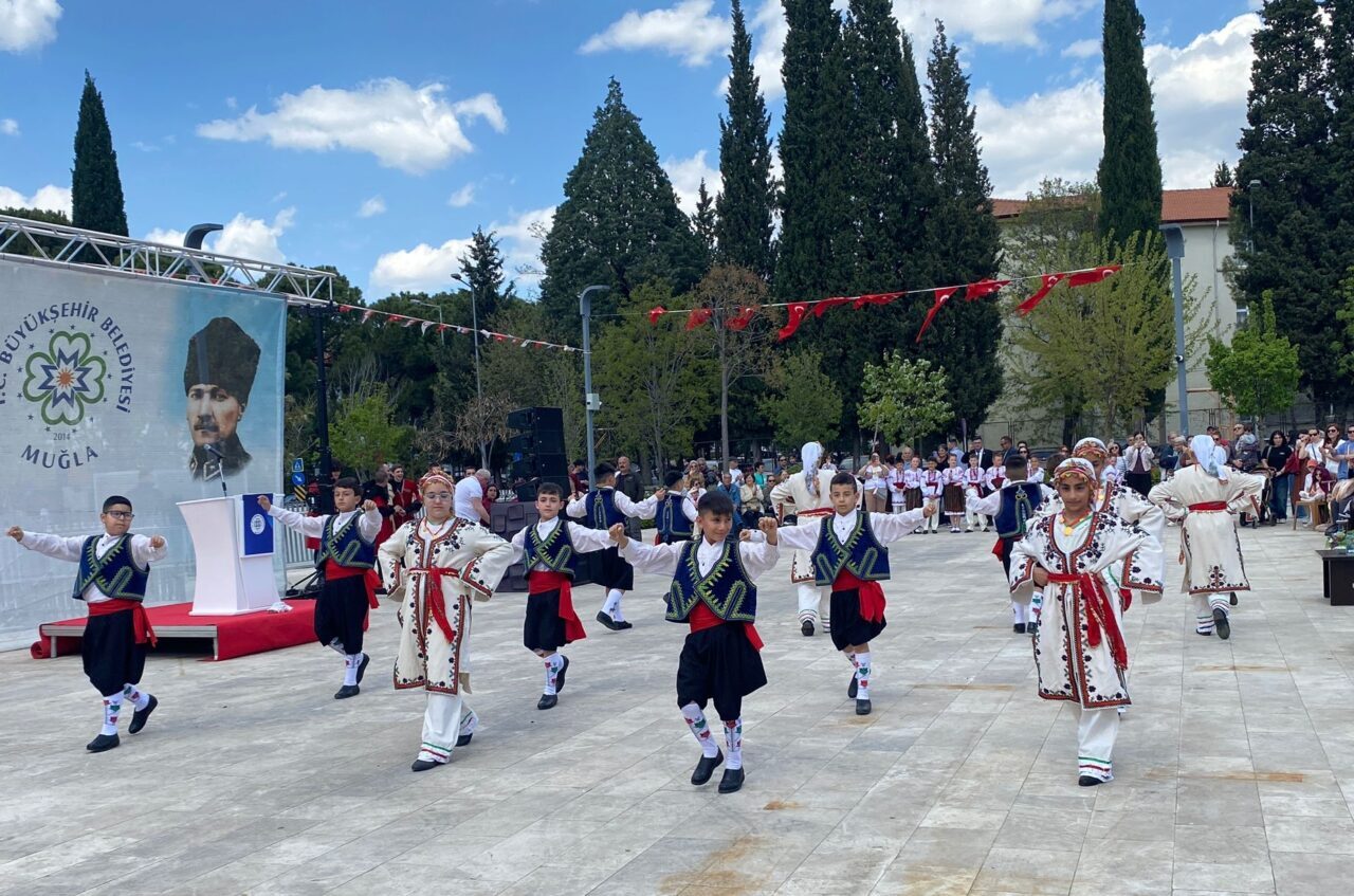 Menteşe Kent Meydanı'nda düzenlenen etkinlikte Türkiye'nin yanı sıra Gürcistan, Kuzey Kıbrıs Türk Cumhuriyeti, Litvanya, Moldova ve Sırbistan’dan gelen çocuk halk dansları ekipleri sahne aldı.
