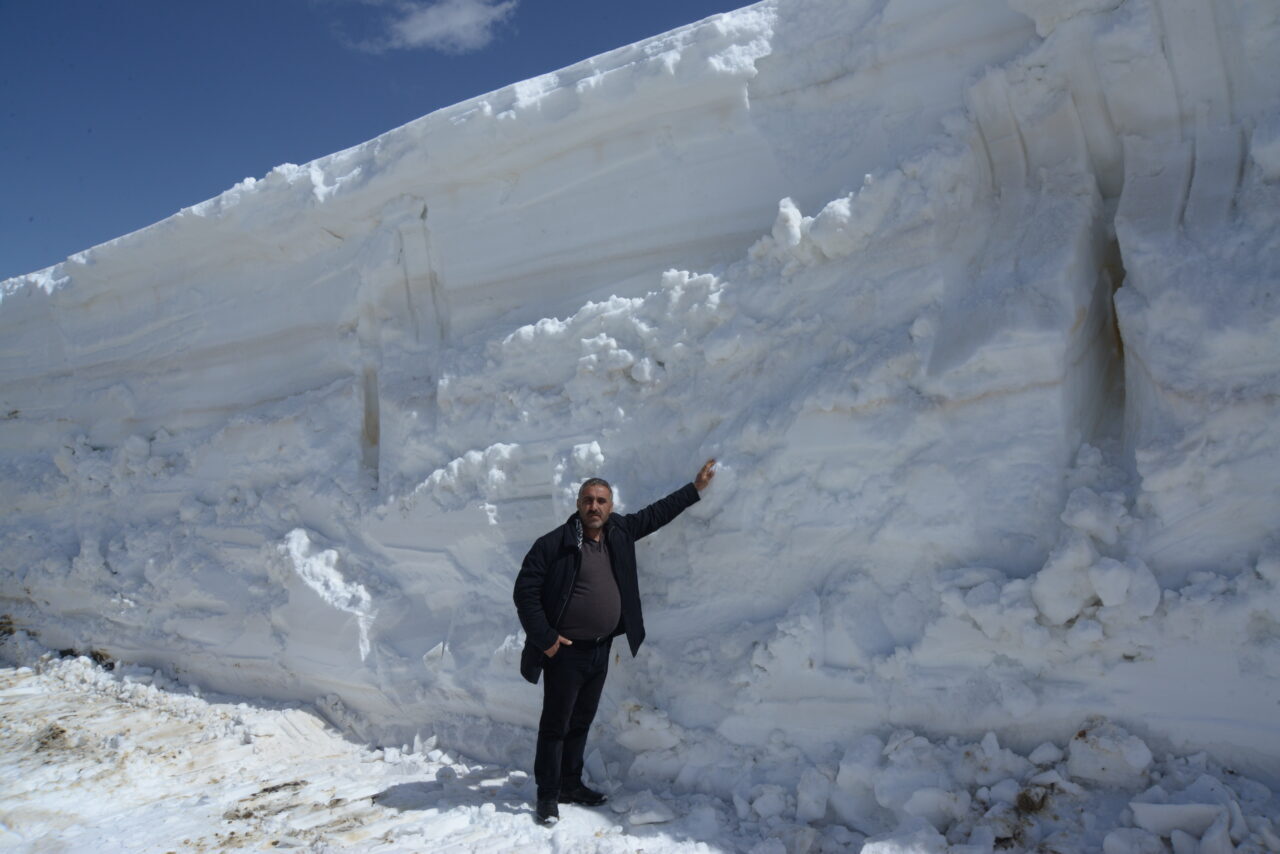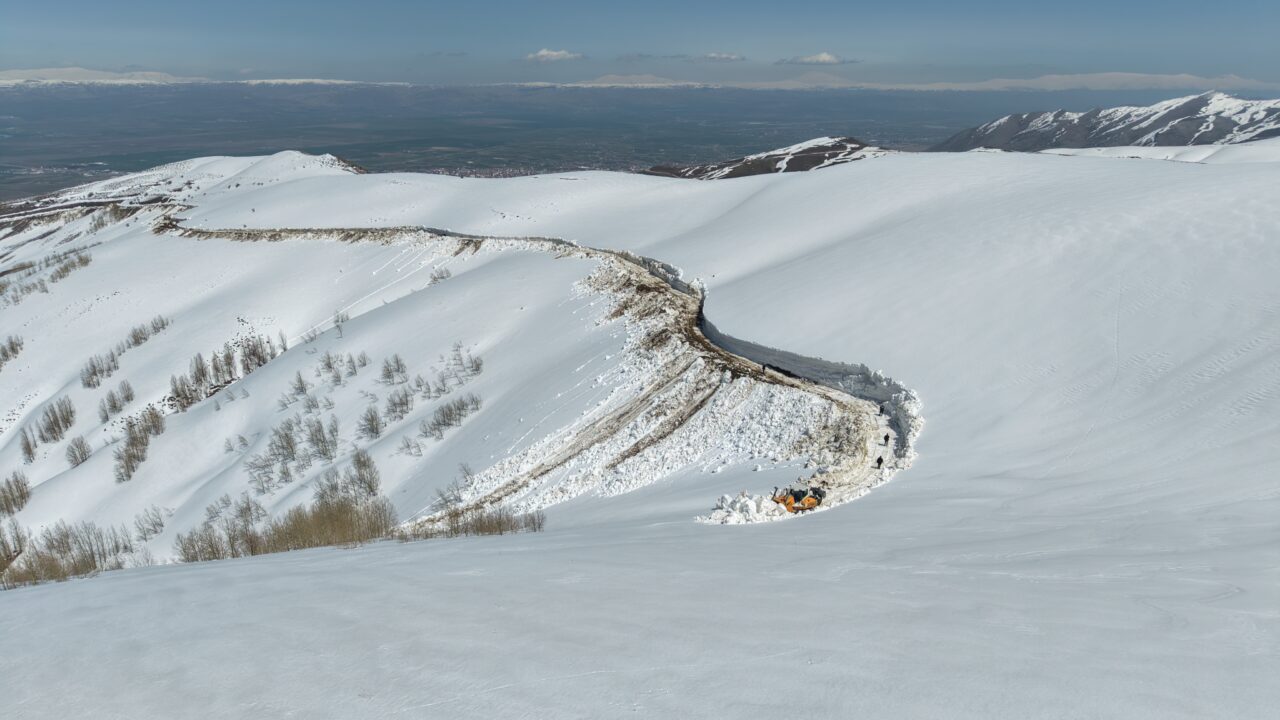 Kar kalınlığının yer yer 1 metreyi bulduğu yolun bir kısmını açan ekipler, yolun tamamını açmak için mesai yapıyor.