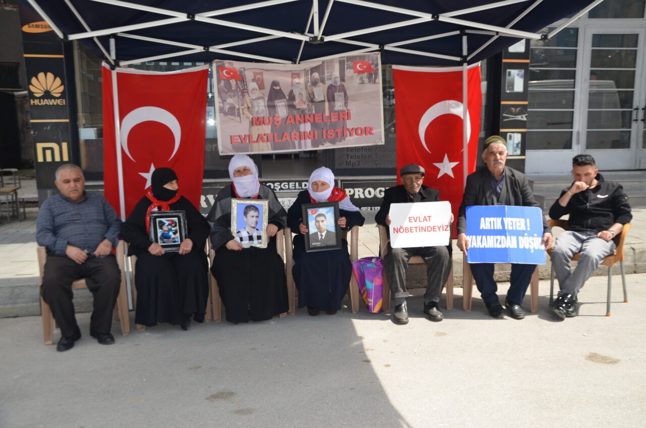 MUŞ (AA) – Muş'ta çocukları terör örgütü PKK tarafından kaçırılan aileler, DEM Parti İl Başkanlığı binası önündeki eylemlerine devam etti.