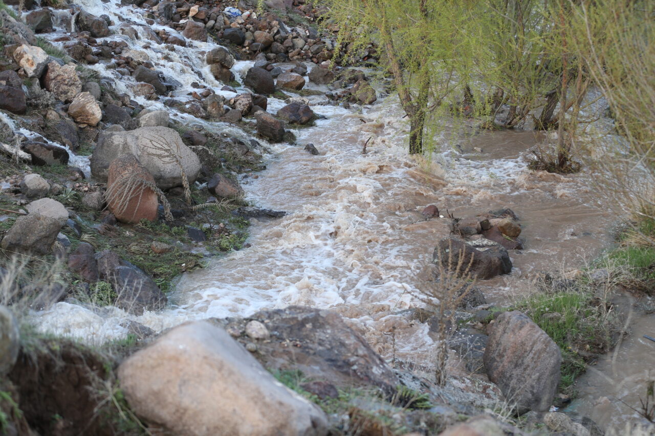 Belediye Başkanı Emrah Özdemir, yaptığı açıklamada, suların kontrollü şekilde Akkaya Barajı'na yönlendirildiğini bildirdi.