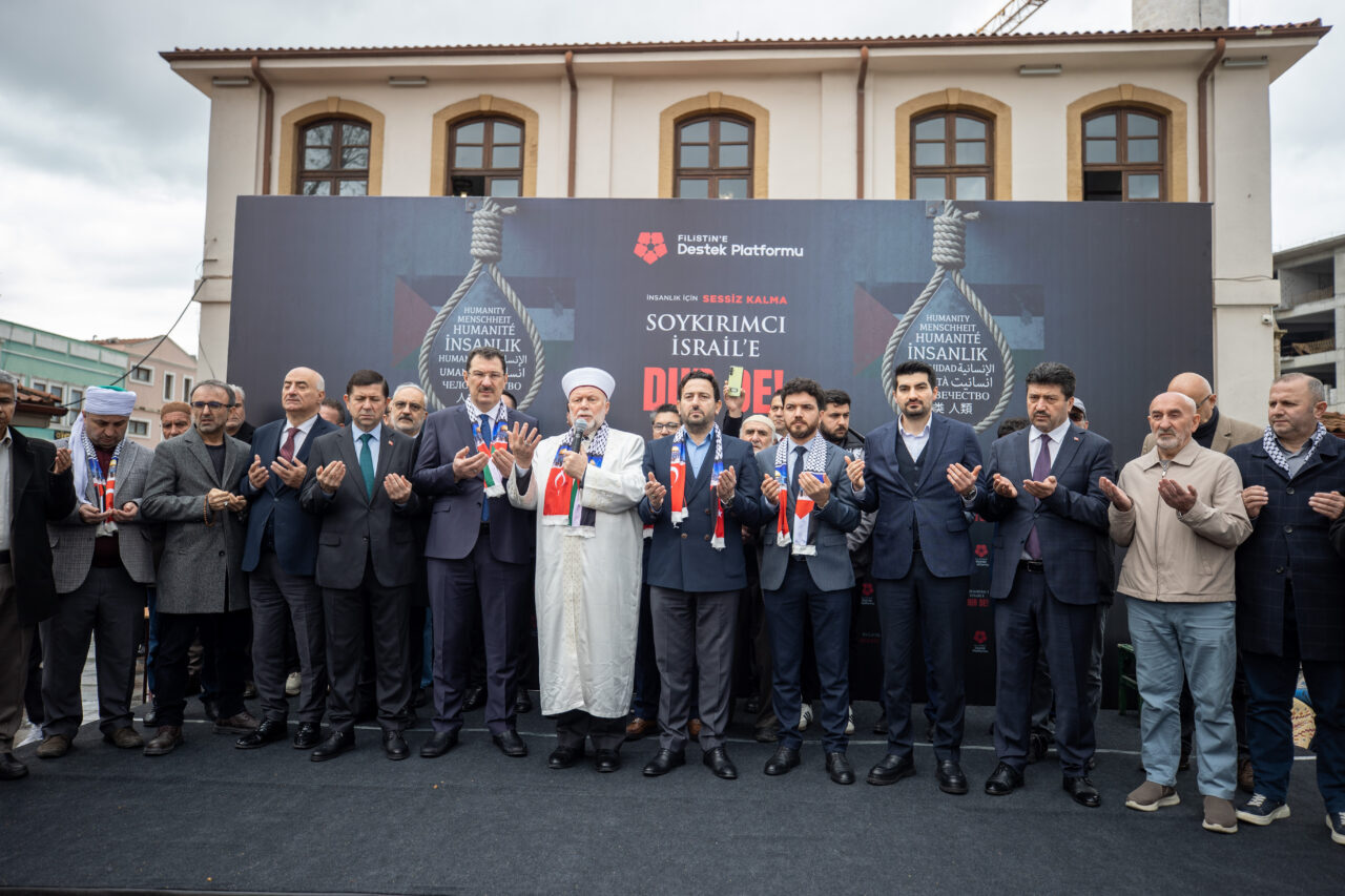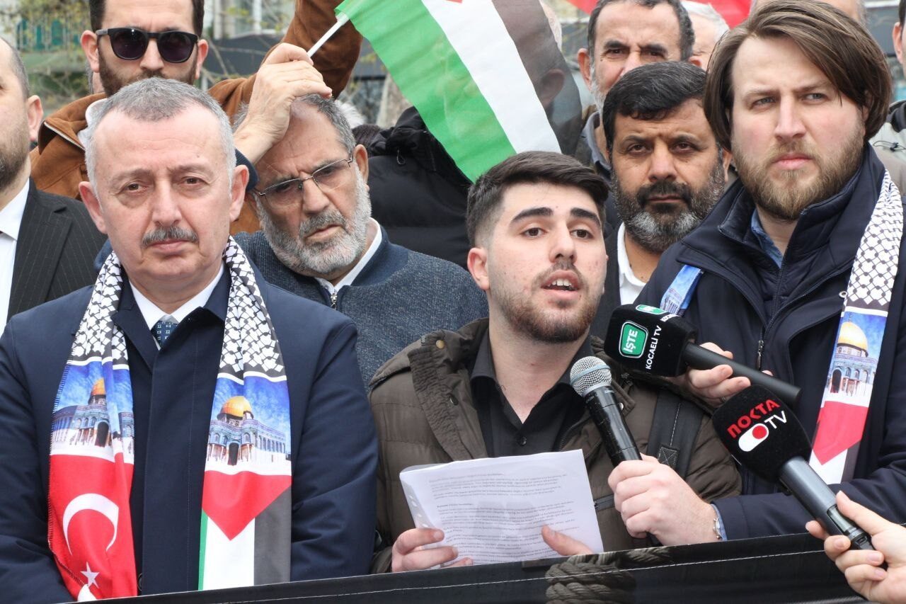 Filistin'e Destek Platformu adına açıklamayı okuyan Selman Kürklü, zulüm dalgasının sadece Filistin topraklarıyla sınırlı kalmadığını, işgalci rejimin saldırganlığının tüm bölgeyi ateş çemberine sürüklediğini söyledi.