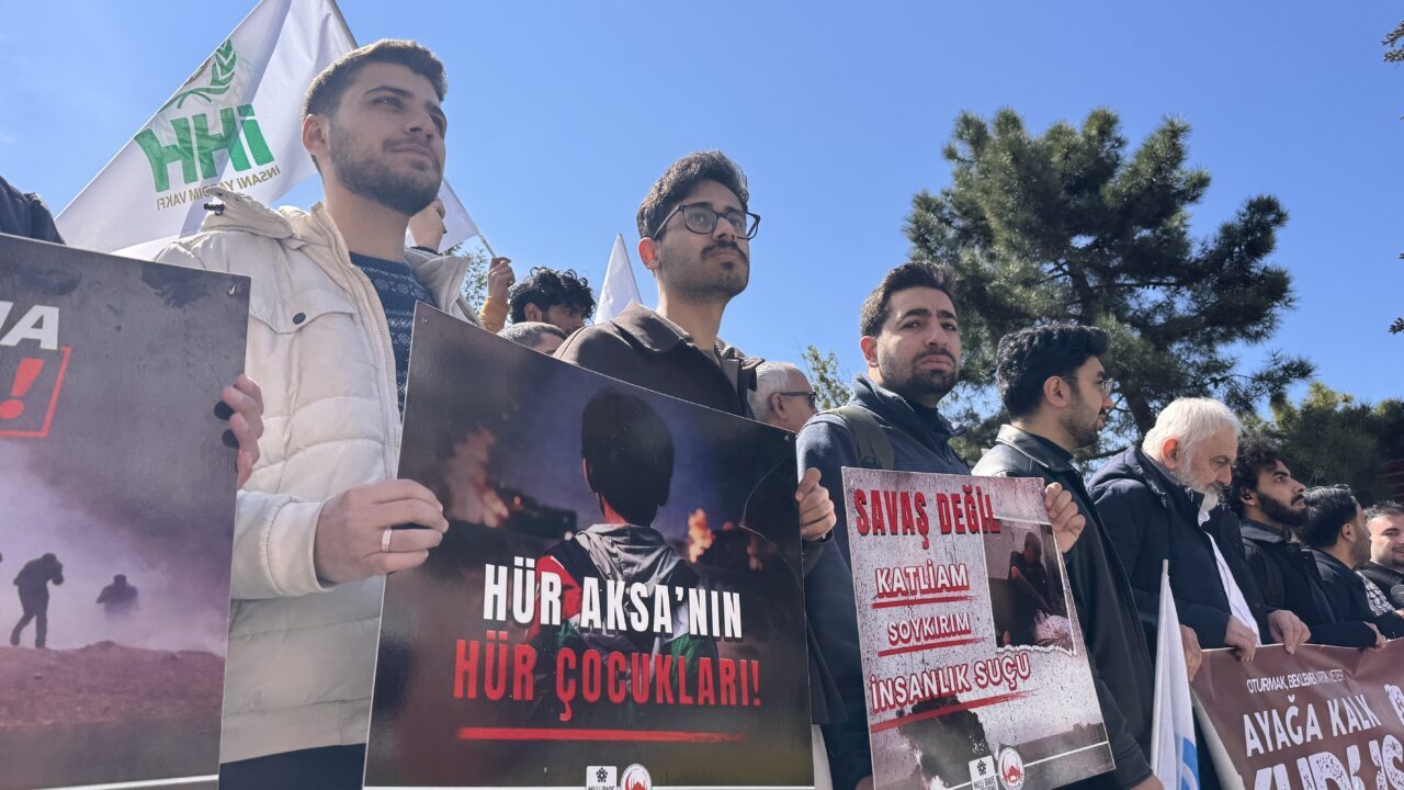 Zonguldak Bülent Ecevit Üniversitesi (BEUN) Farabi Kampüsü önünde cuma namazı sonrası bir araya gelen üniversite öğrencileri ve sivil toplum kuruluşu temsilcileri, ellerinde "Katil İsrail, Filistin'den defol", "Filistin'de soykırımı durdur", "Filistin 80 yıldır işgal altında" yazılı dövizler taşıyarak sloganlar attı.