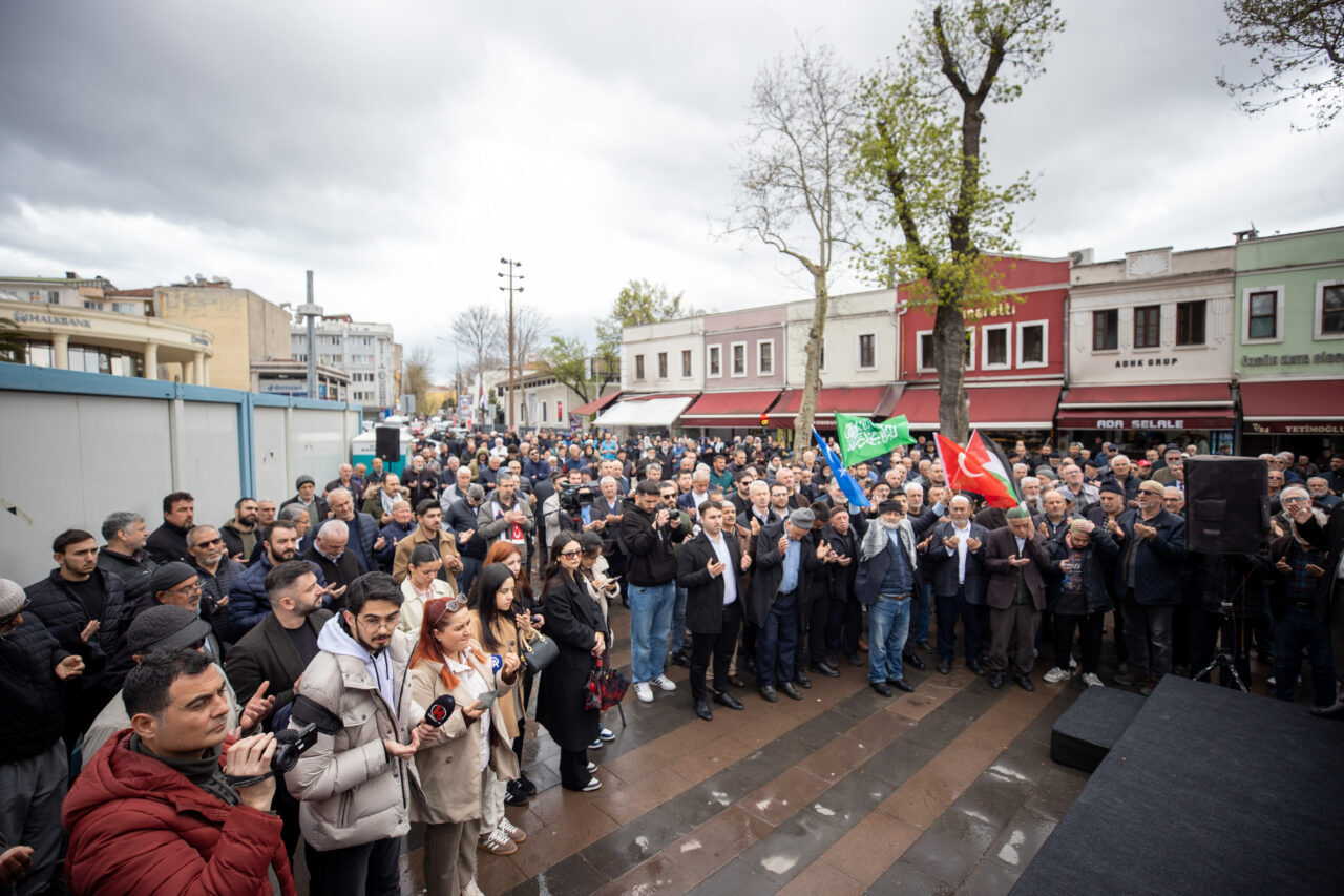 Kocaeli'de Fevziye Camisi önünde toplanan Kocaeli Gönüllü Kültür Teşekkülleri ve Kocaeli Eğitimi Destek Platformu, sivil toplum kuruluşu üyeleri ve vatandaşlar, "Filistin'deki idam kararına karşı susmuyoruz" pankartı açtı.
