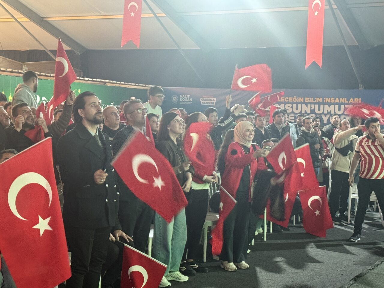 Samsun Cumhuriyet Meydanı'nda çadırdaki dev ekranda ellerinde Türk bayraklarıyla müsabakayı takip eden Samsunlular, milli takımın 2026 FIFA Dünya Kupası Avrupa Elemeleri play-off turu finalinde Kosova'yı 1-0 mağlup etmesiyle büyük sevinç yaşadı.