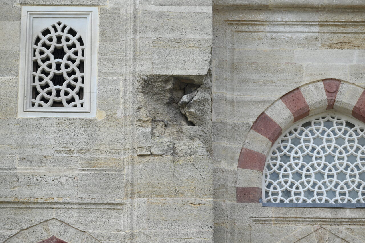 Balkan Savaşları sırasında Bulgar kuvvetlerinin ateşi sonucu gülle isabet eden ve cami cephesinde iz bırakan bölüm, geçmişin sessiz tanığı olarak korundu.