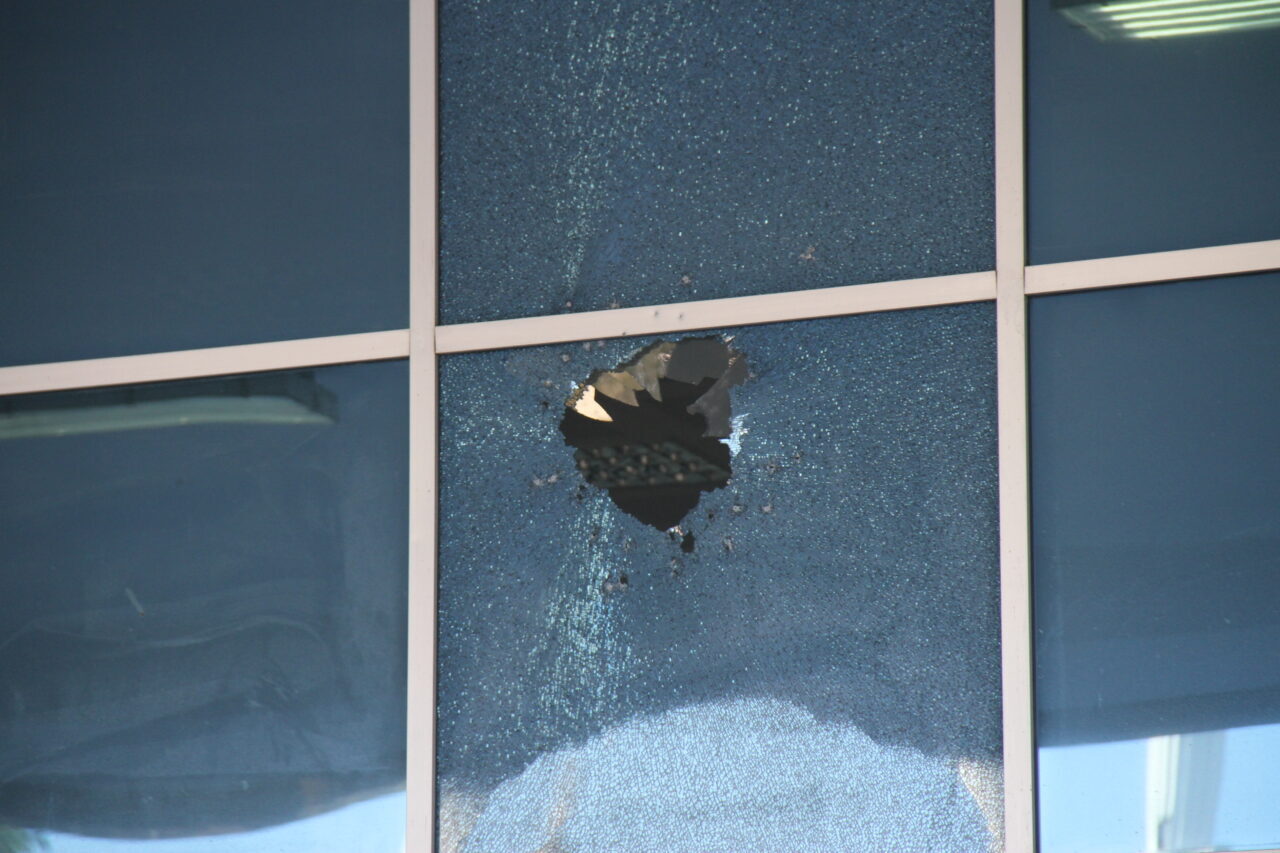 Olayda binanın giriş kapısı ve vezne bölümünün camları kırıldı.