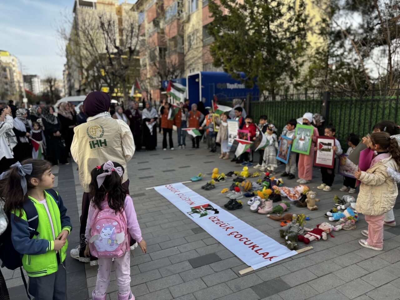 "İsrail bu saldırıları artık Filistin dışındaki ülkelere de taşıyor. Yakın zamanda İran'da bir okula atılan bombayla çok sayıda çocuk hayatını kaybetti. Biz, İran'da yaşanan bu olayın Gazze'de yıllardır her gün yaşandığını hatırlatmak için böyle bir etkinlik düzenledik. Hemen her gün onlarca çocuk hayatını kaybediyor. Bu zulmün sona ermesi için herkesin ses vermesini istiyoruz."