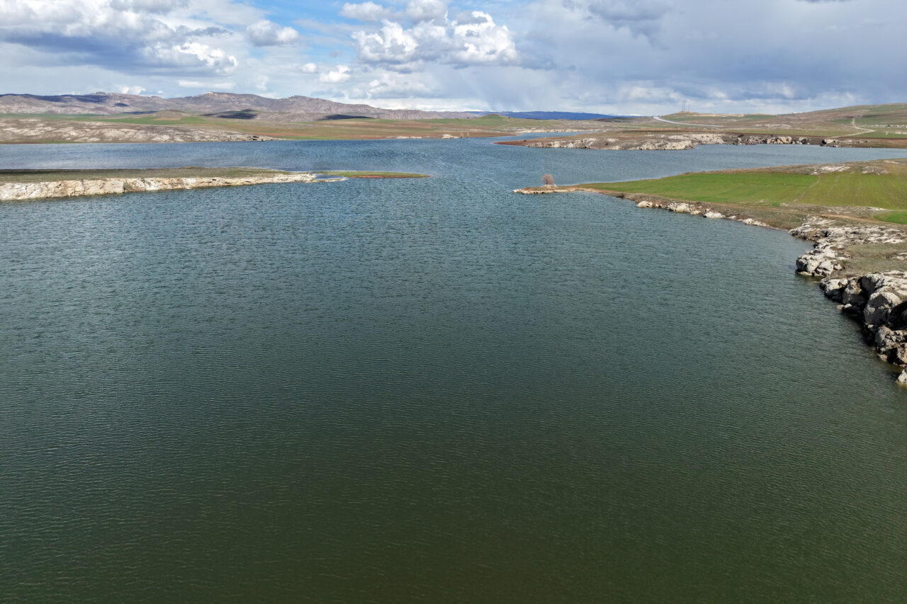 Göl ile bölgedeki Yarhisar, Dışkapı ve Durulmuş köyleri arazisinde yaklaşık 15 kilometrelik hatta oluşan su birikintileri, dronla görüntülendi.