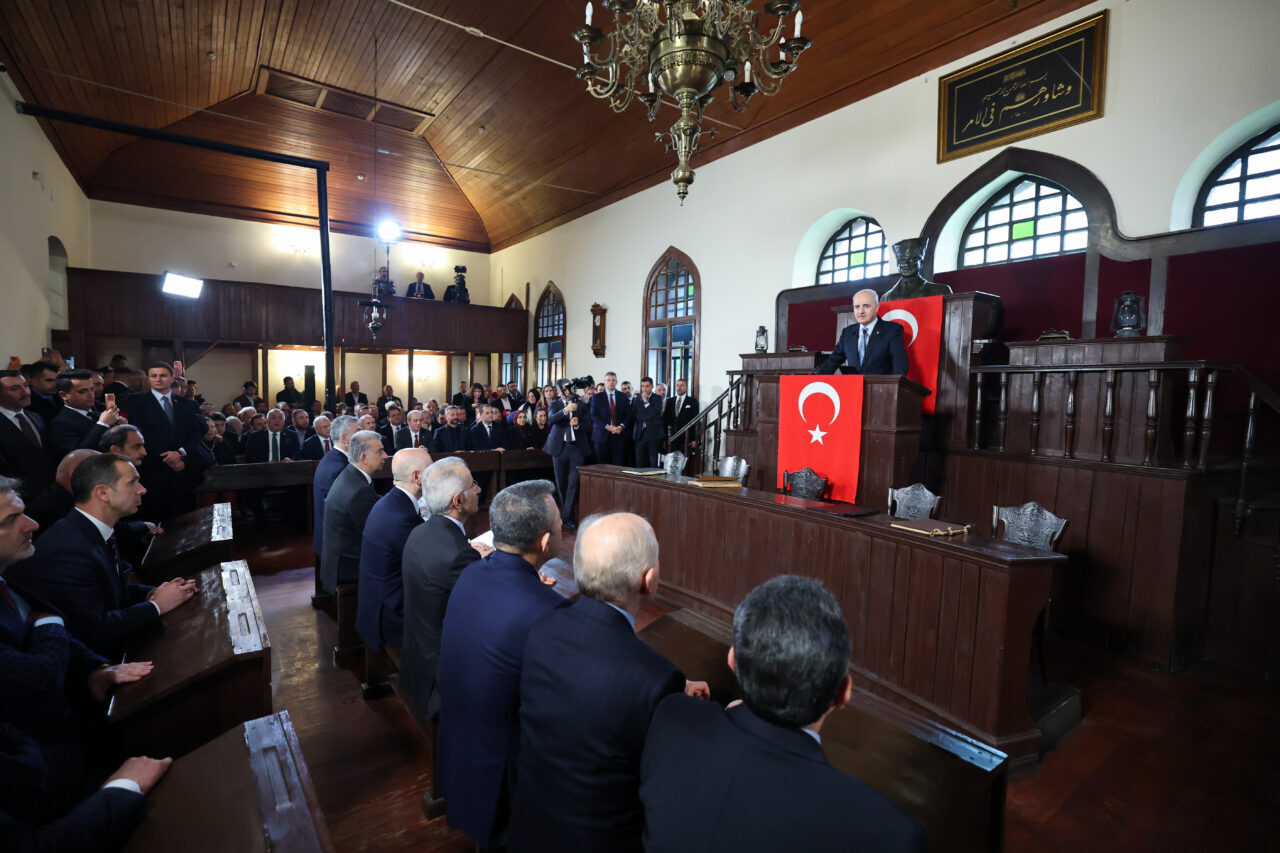 Kurtulmuş, Türkiye'nin bölgesindeki türbülans, çatışma ve gerilimlere rağmen istikrar içerisinde ayakta durduğunun altını çizerek, "Birinci Meclis'te sanmayın ki herkes aynı fikirdeydi, farklı fikirlerde olan nice insanlar fikirlerini müzakere ettiler ama bir hedefe yöneldiler. Hepimiz bugünün dünyasında da hele hele Orta Doğu gibi artık bir cehennem çukuruna döndürülen bu coğrafyada ayakta durmak istiyorsak bir olacağız, beraber olacağız, aynı hedefe yönelik olarak hareket edeceğiz." ifadesini kullandı.