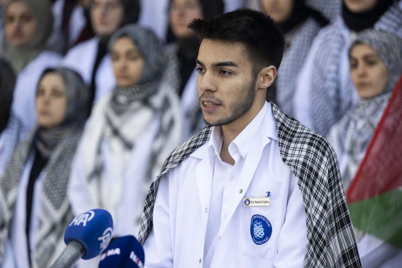 Gazi Üniversitesi Tıp Fakültesi öğrencileri olarak Gazze'deki meslektaşlarının çaresizliğini yüreklerinde hissettiklerini söyleyen Özgülcan, şunları kaydetti: