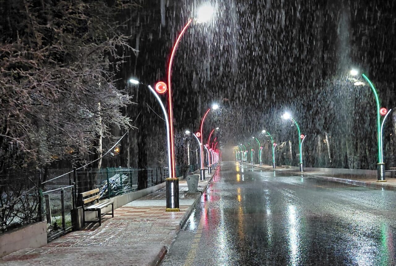 İlçe merkezinde de kar yağışı devam ediyor. Yüksek kesimlerde kar kalınlığı 10 santimetreye ulaştı.