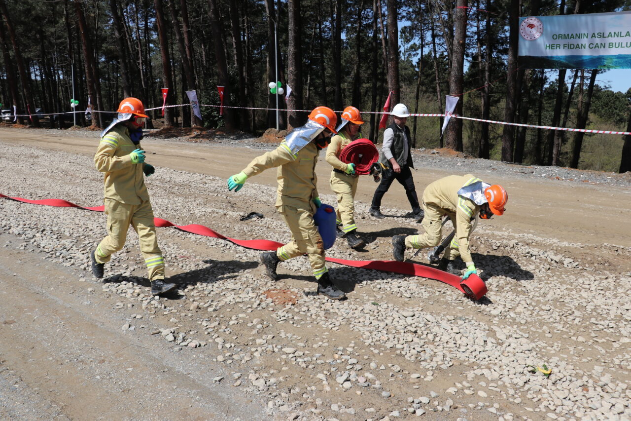 Yarışmacılar yangın, koşu ve orman ürünlerinin üretim ile satış sürecini kapsayan işletme pazarlama mesaha işleri parkurlarında mücadele etti.