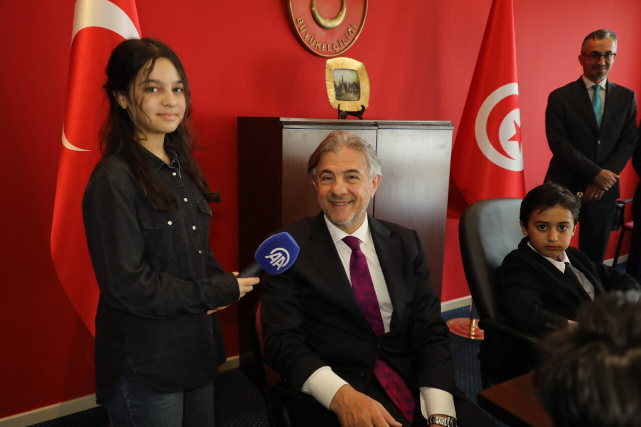 Programda temsili olarak Anadolu Ajansını muhabiri görevini icra eden öğrenci Yağmur Rachel Özdemir de Türkiye’nin Tunus Büyükelçisi Ahmet Misbah Demircan ile röportaj gerçekleştirdi.