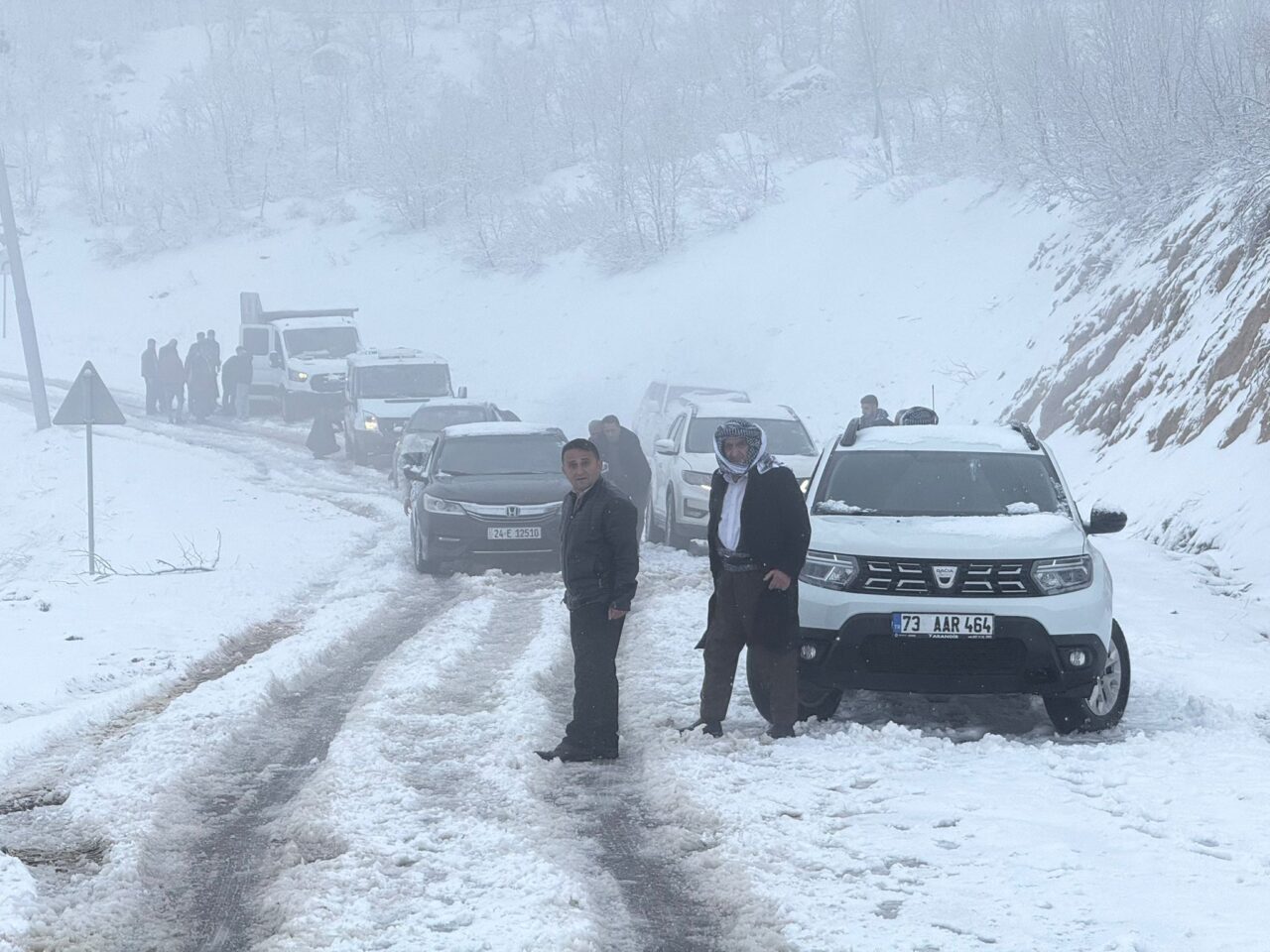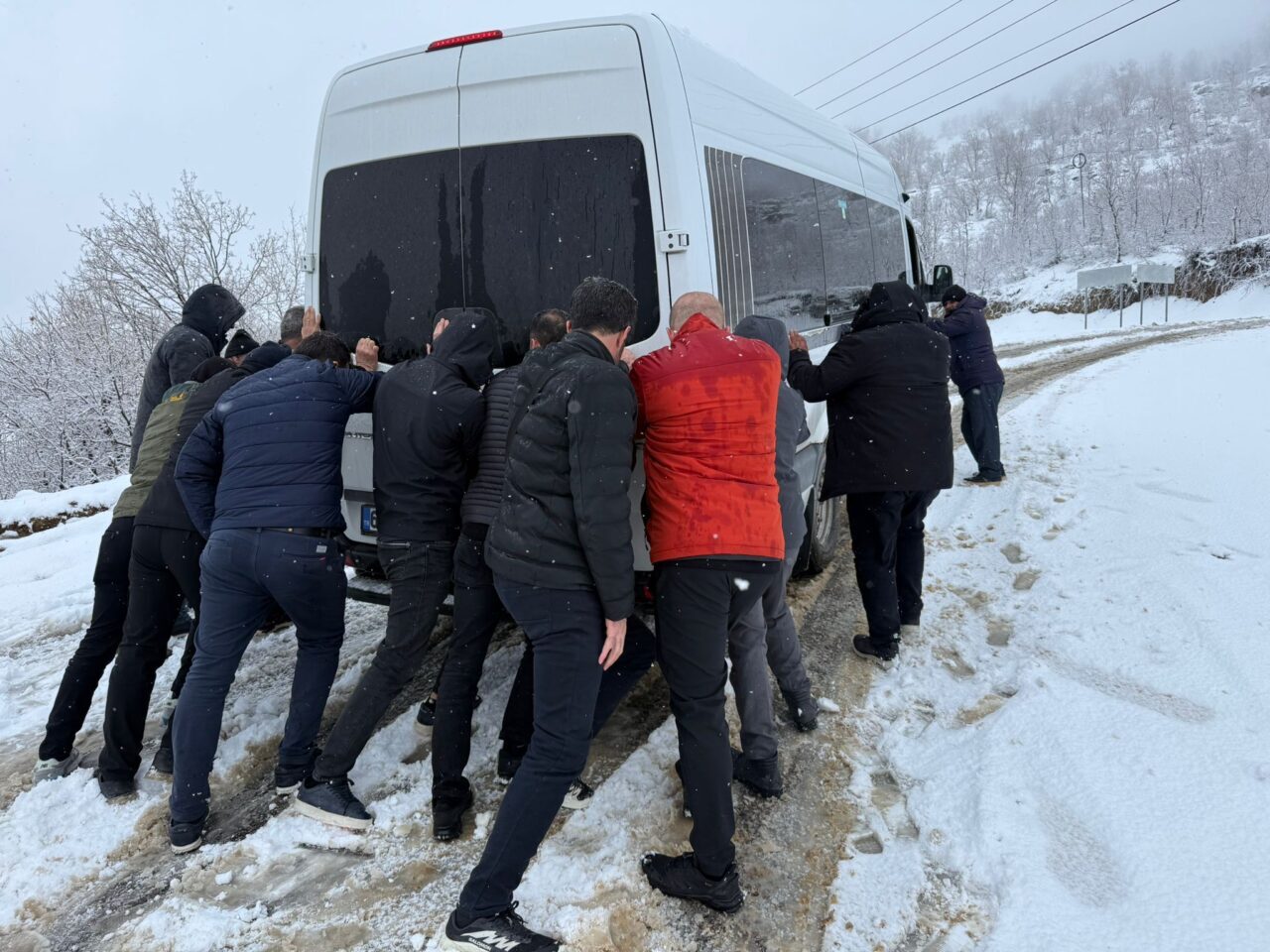 Vatandaşlar, yolda kalan bazı araçları iterek devam etmelerini sağladı.