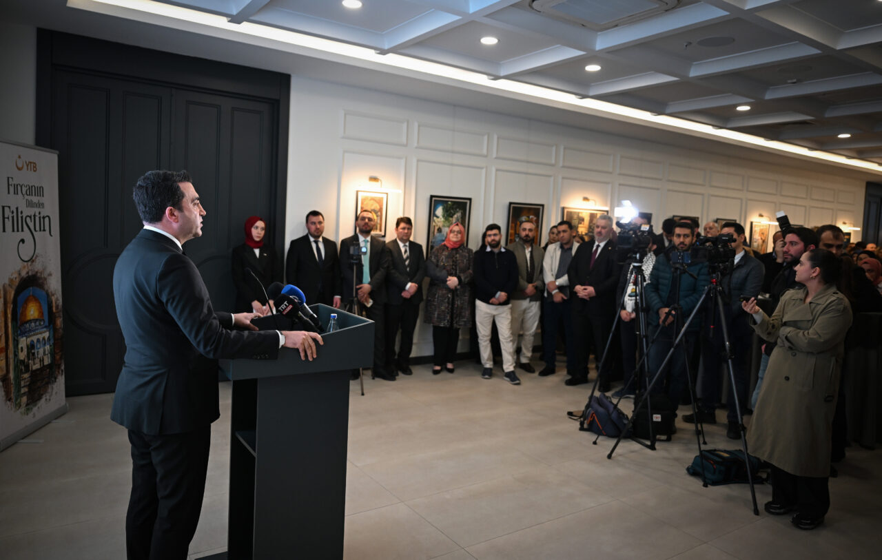 Turan, yaptığı konuşmada Filistin'deki durum nedeniyle bölgenin tam bir ateş çemberinin içinde olduğunu belirterek, "Bu sorun halledilmediği sürece de bu yüksek ateş devam edecek ve maalesef coğrafyamız savaşla, insanların toplu halde öldürülmeleriyle yüzleşmek durumunda kalacak. Bunun müsebbibi hiç kuşkusuz ki işgalci siyonist İsrail ve arkasındaki küresel güçlerdir." dedi.